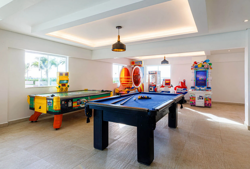 playground, cinema, brinquedoteca e sala de jogos.
